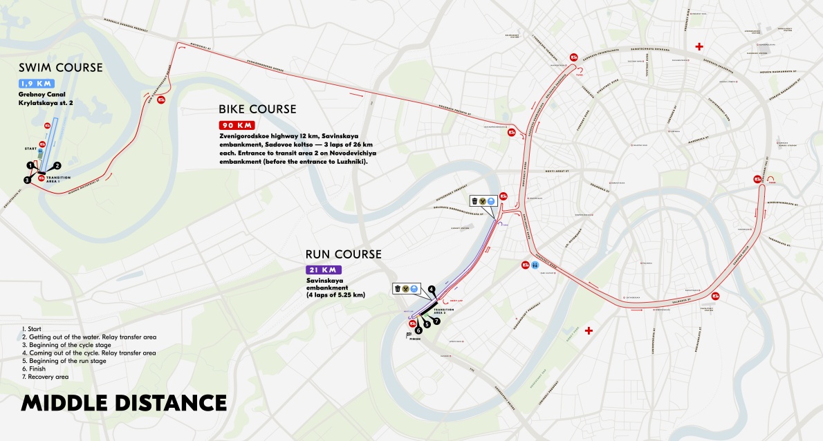 Zvenigorodskoe highway 12 km, Savinskaya embankment, Sadovoe koltso – 3 laps of 26 km each. Entrance to transit area 2 on Novodevichiya embankment (before the entrance to Luzhniki).